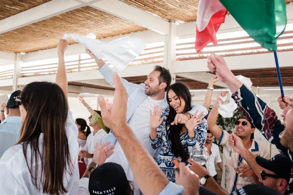 Є сцена, заради якої Bagatelle St. Tropez впізнають у всьому світі. Коли сонце вже високо, музика стає гучнішою, офіціанти піднімають ритм, і весь зал “вибухає” рухом.