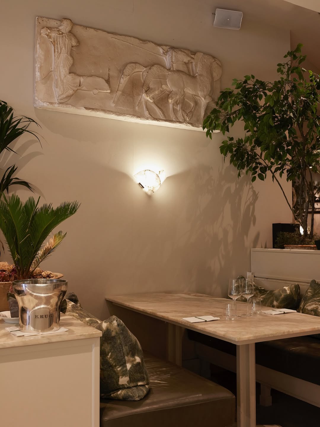 А ще — світло. Його тут багато. Вдень — природне, вечорами — мʼяке, медове, яке перетворює простір на щось середнє між зимовим садом і фільмом Вуді Аллена.