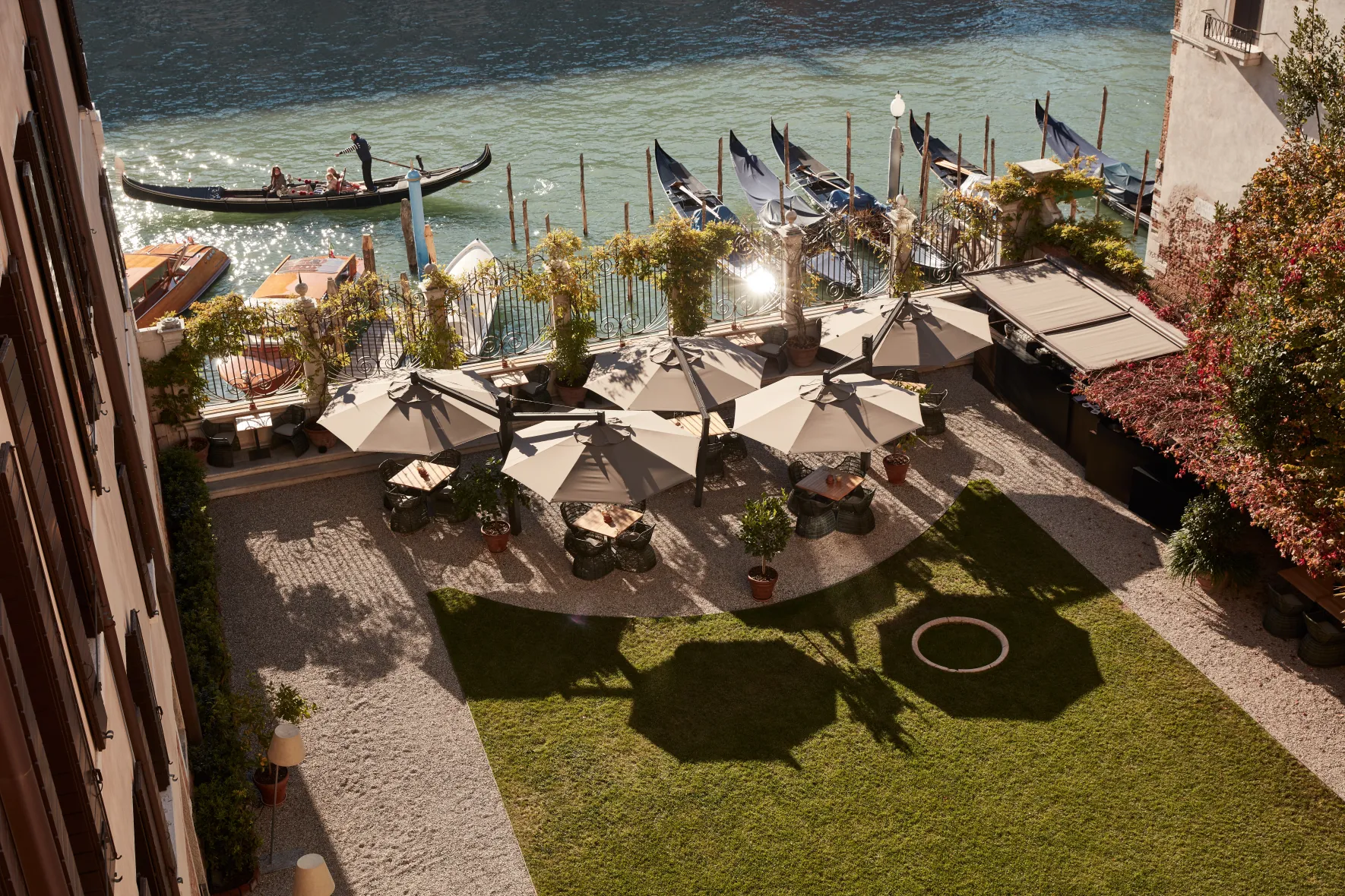 У теплі місяці сніданки та обіди подаються в приватному саду готелю з видом на канал.