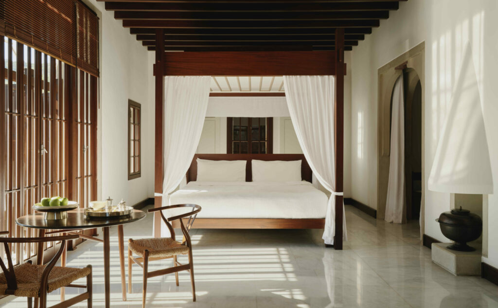 Amanruya не має номерів у класичному розумінні. Усі 35 павільйонів — це окремі міні-вілли з приватними басейнами, внутрішніми двориками, камінами та садками.