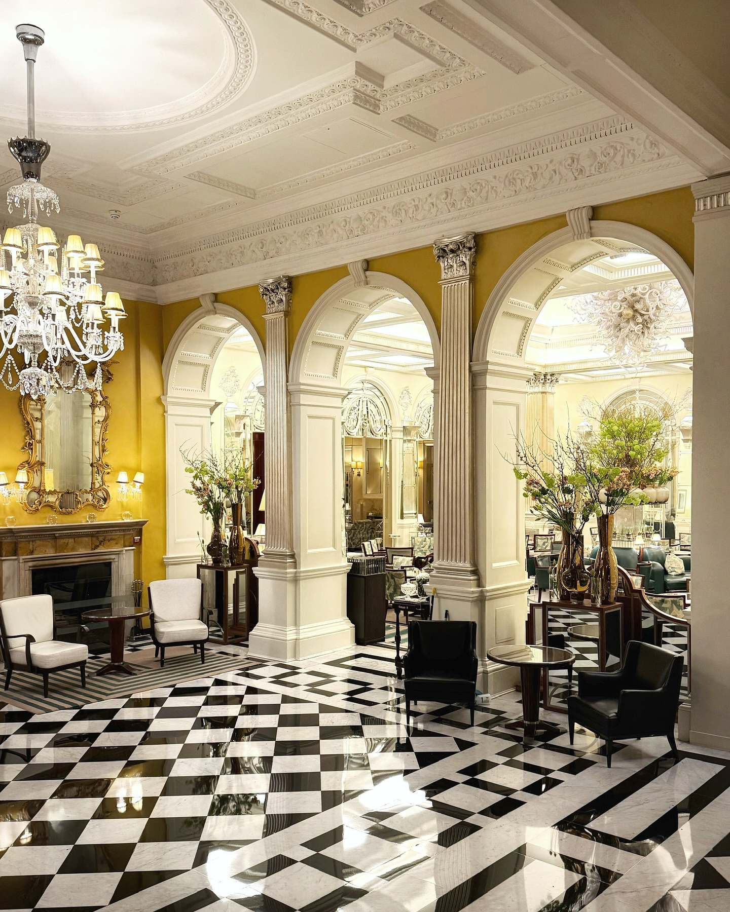 Claridge’s вражає стриманою розкішшю. Ар-деко тут не декорація, а фундаментальний код готелю: високі стелі, м’яке світло, мармур, латунь і оксамит — усе говорить про добу, коли гідність не потребувала надмірностей.