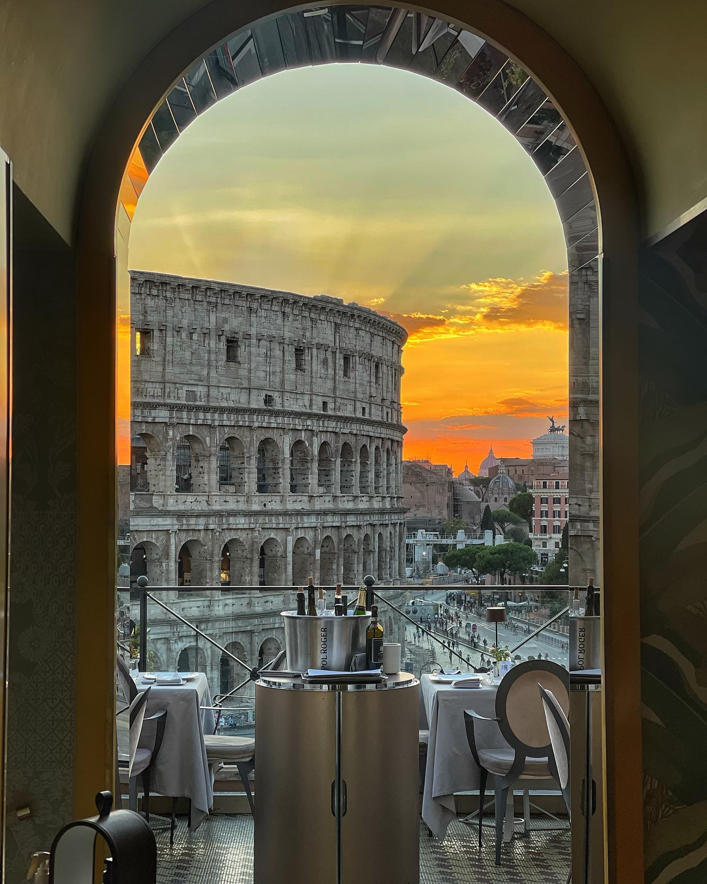 На даху Palazzo Manfredi розташований ресторан Aroma, відзначений зіркою Michelin. Це місце, де гастрономія зустрічається з архітектурою: ви вечеряєте під поглядом Колізею, що підсвічується вечірнім світлом.