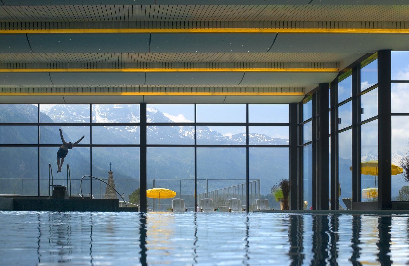 З готелю відкривається краєвид на долину Енгадін, озеро та вершини Піц Наїр — локація максимально зручна для зимового та літнього відпочинку.