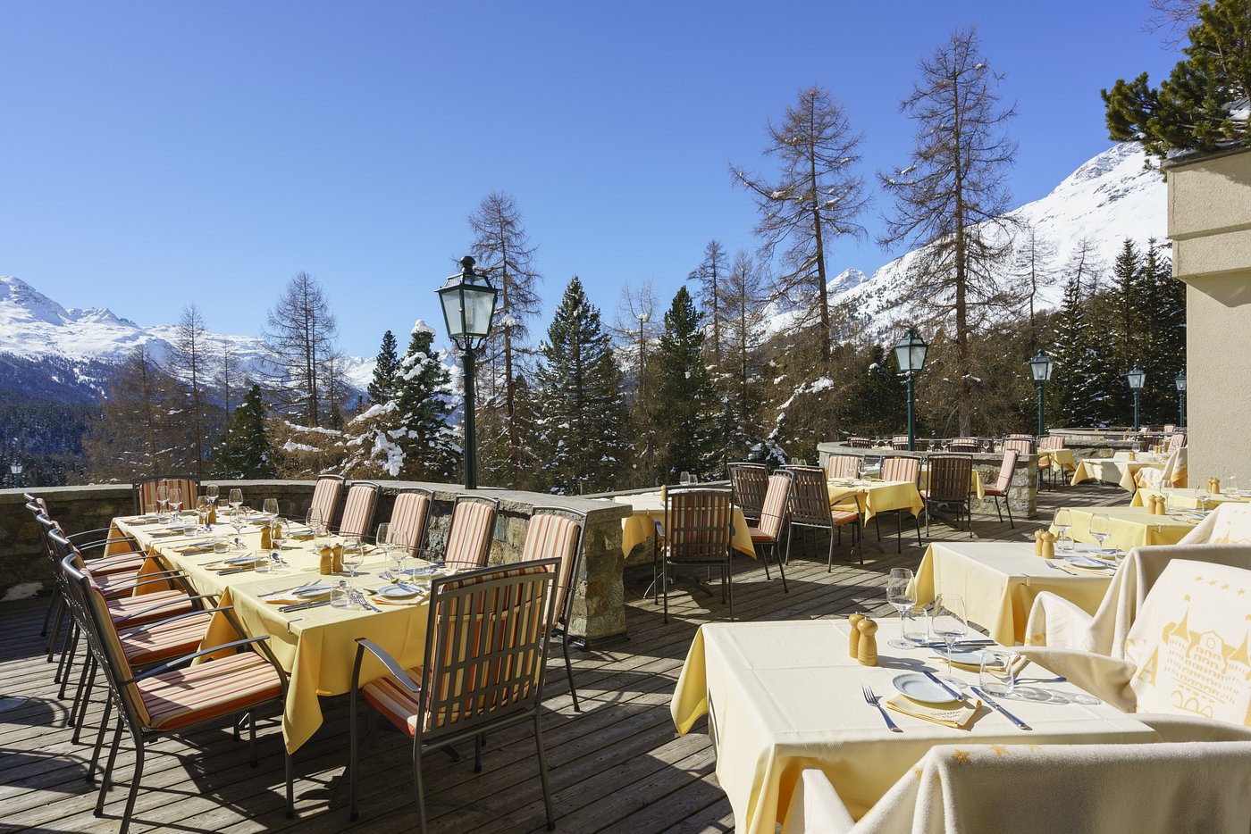 Готель стоїть на пагорбі, за кілька хвилин від центру Санкт-Моріца, і має прямий доступ до гірськолижних трас — ski in/ski out.