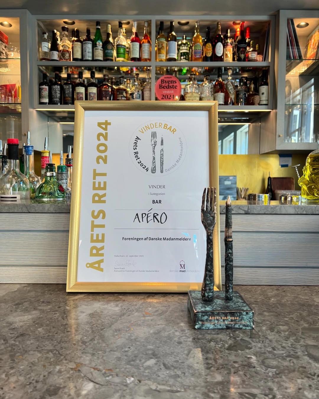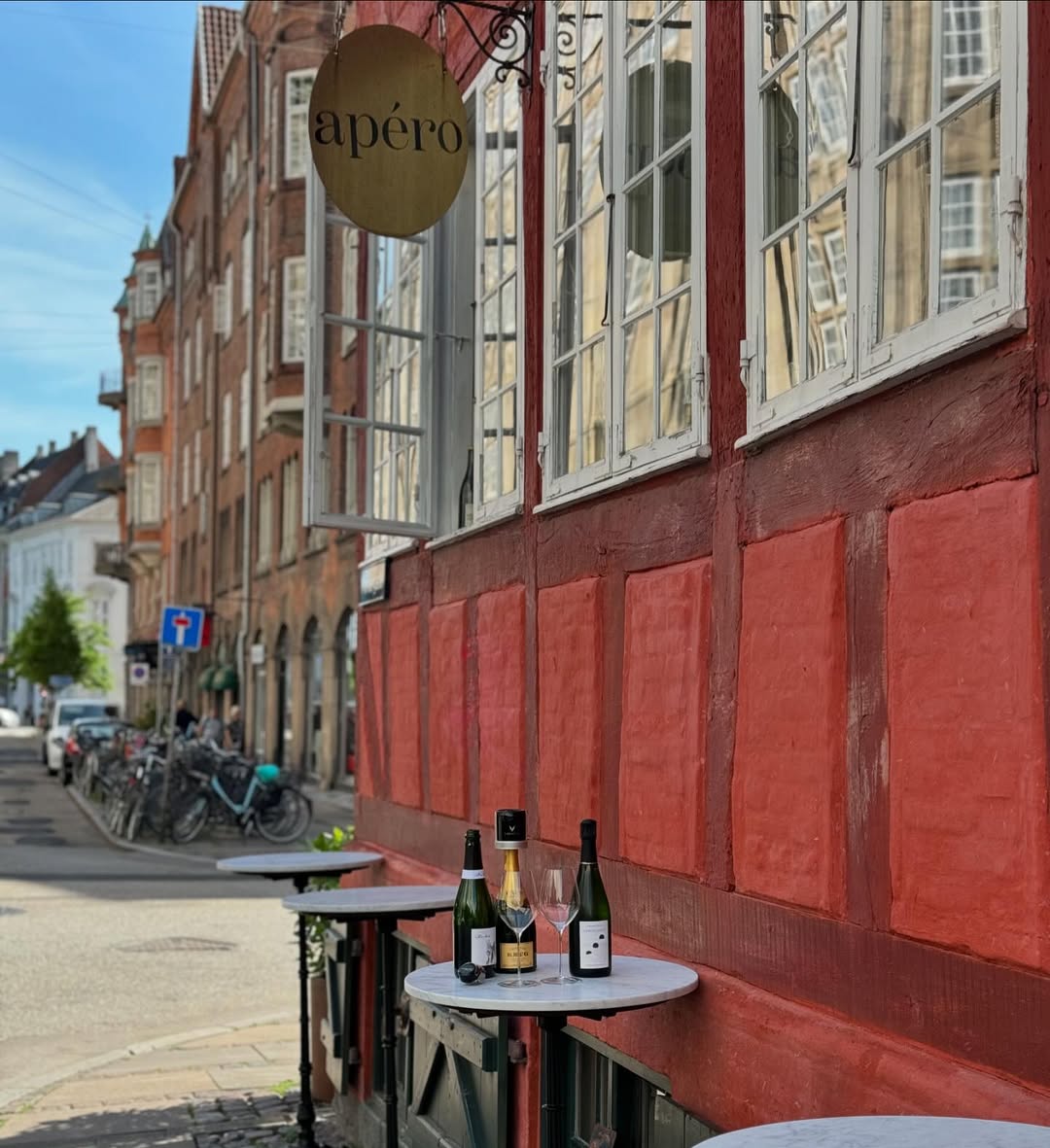 Apéro имеет винный погреб с более 2000 наименований вин, которым делится со своим “старшим братом” – рестораном Møntergade. В 2024 году заведение получило награду White Star в международном гиде Star Wine List, что подтверждает исключительность винной карты.