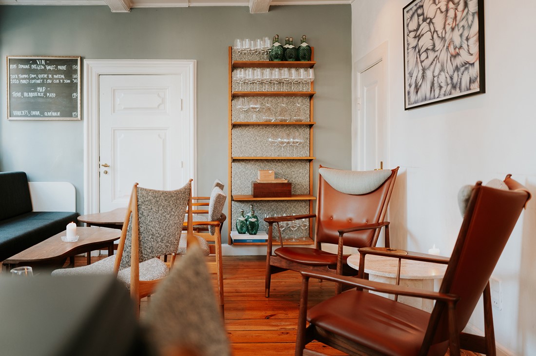 Дизайн интерьера выдержан в стиле Finn Juhl – элегантные кресла Whisky Chair и Egyptian Chair, мягкие светильники и деревянные детали, которые делают пространство камерным и интимным.