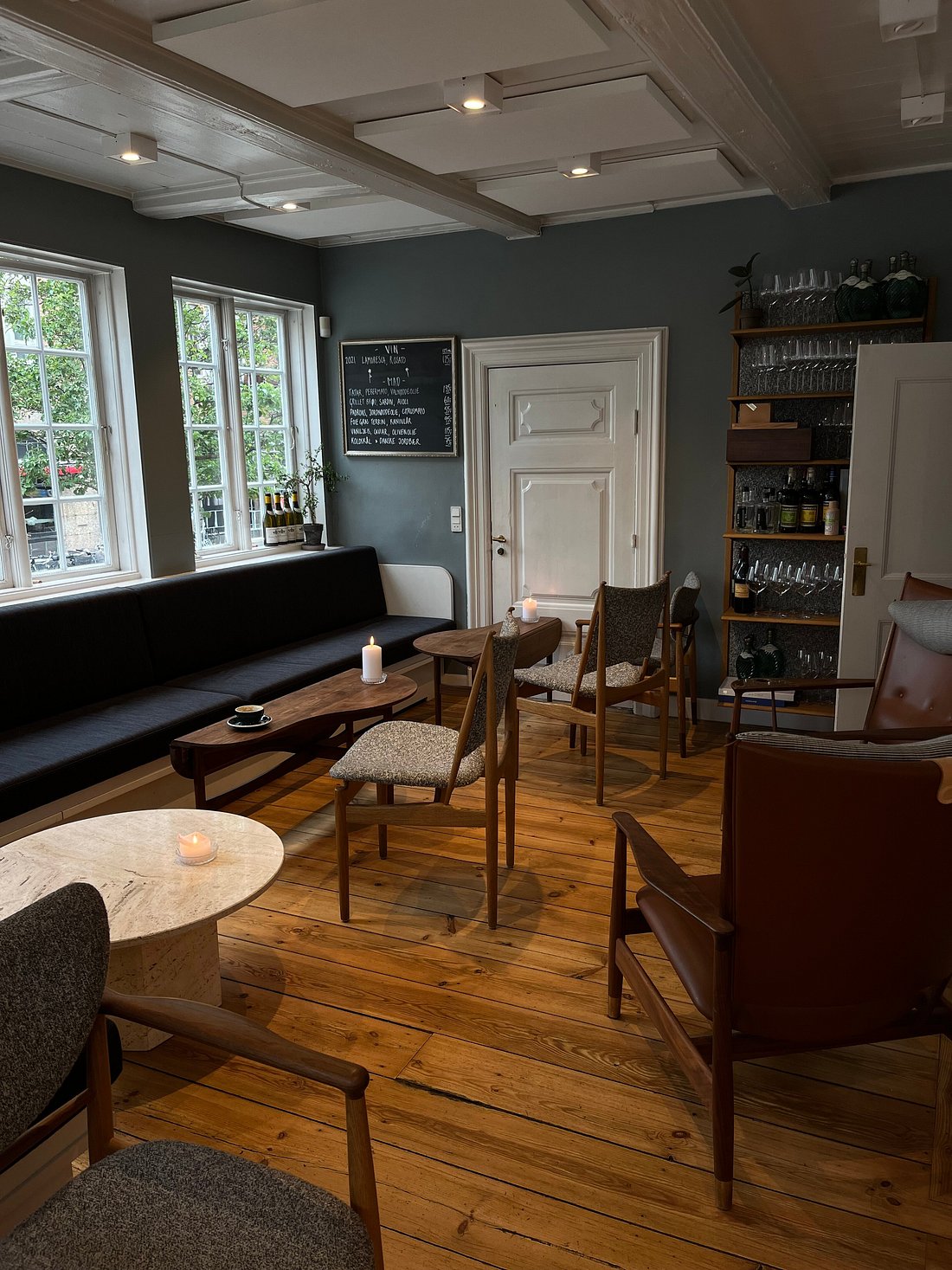 Помимо вина, здесь подают как классические, так и авторские коктейли – от Negroni и Sidecar до фирменных sour-миксов. А для утренних гостей есть Bloody Mary или Mimosa – идеальное начало дня в Копенгагене.