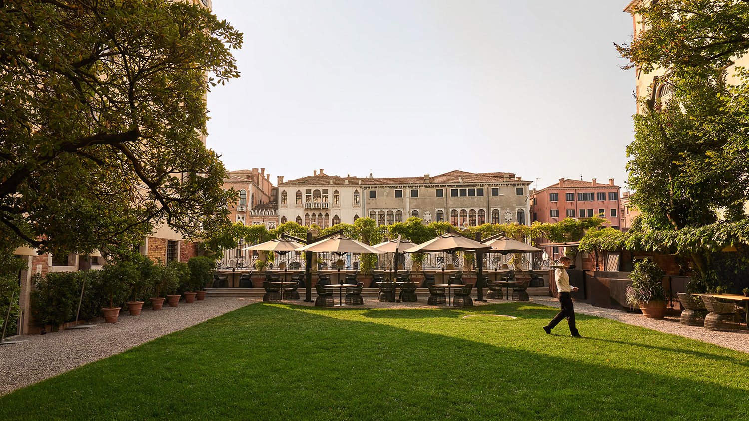 Сад с видом на Гранд-канал позволяет наслаждаться ужином под открытым небом, особенно в теплый сезон.