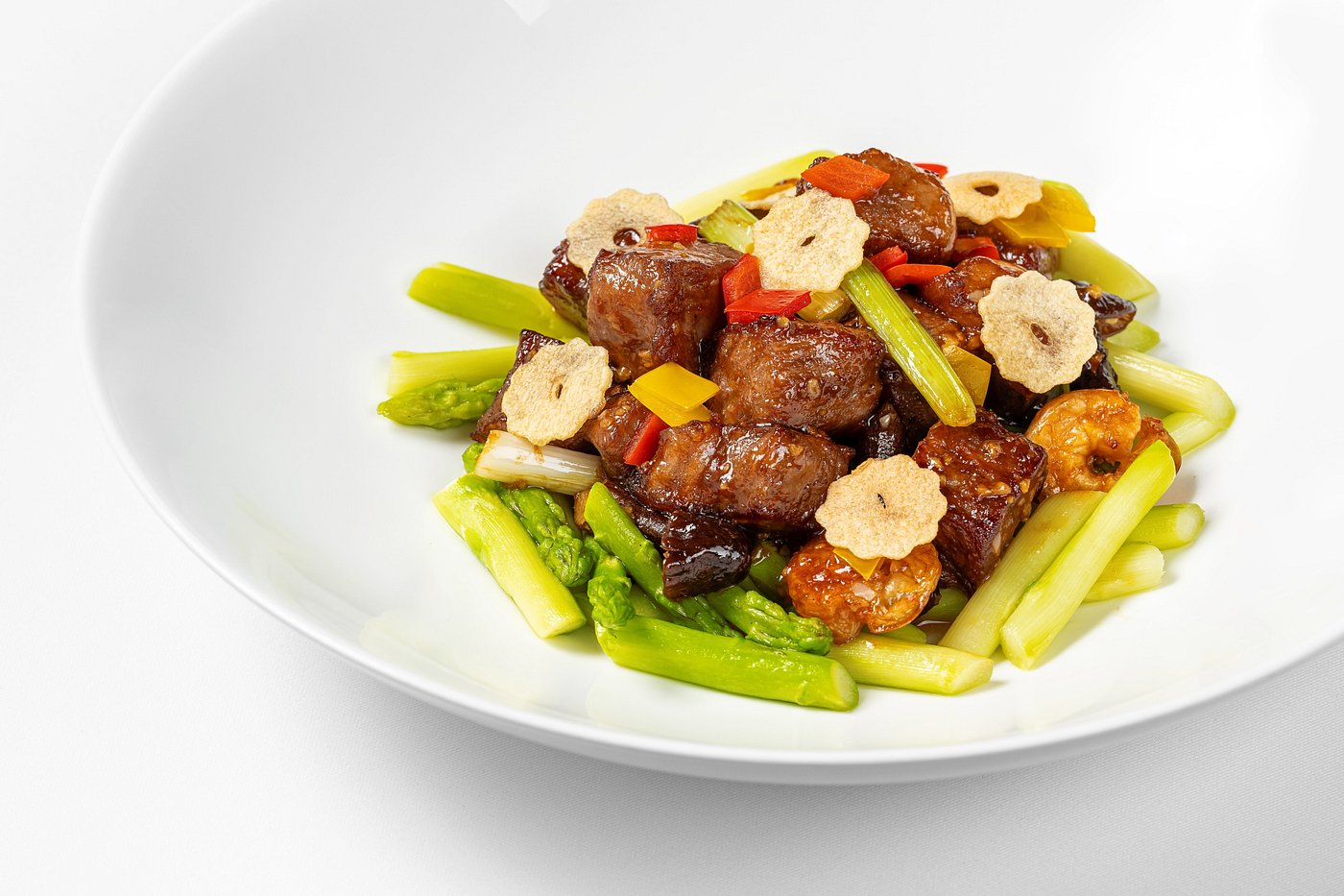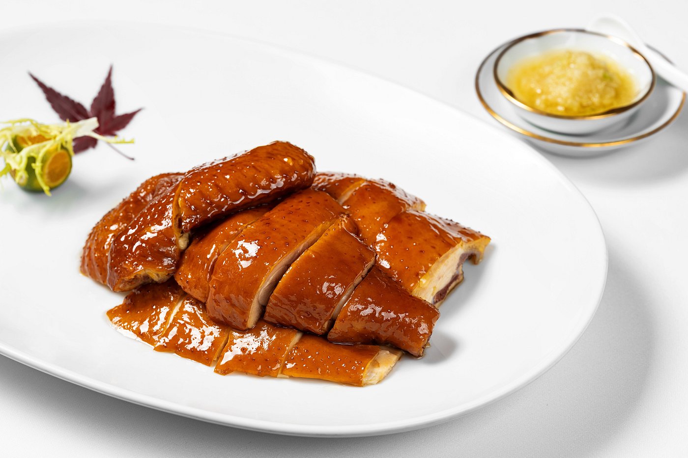 Меню включает классические кантонские позиции – тушеную рыбу групер с соевым соусом, дымленую утку, морской огурец с тыквенным пюре, а также авторские деликатесы, поданные в изящной форме.